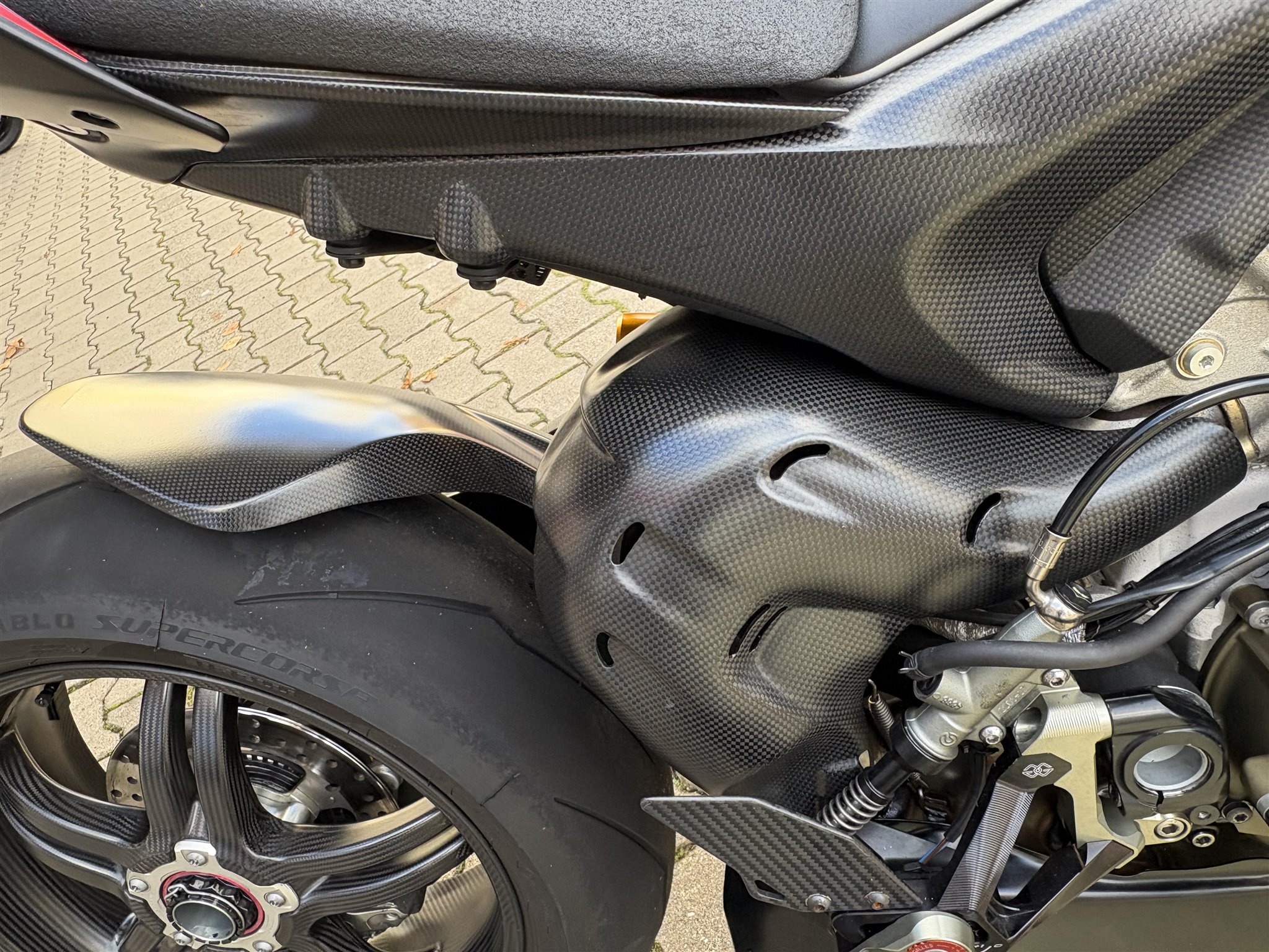 Am Fahrzeug wurde sehr viel hochwertiges Zubehör verbaut, Gilles Fußrastenanlage, Lenkerendenspiegel, Carbon Krümmerabdeckung, kurzer Kennzeichenhalter, Miniblinker hinten und vorn, Kühler- und Auspuffblenden schwarz gepulvert, Carbon Tankabdeckung, Carbon Radabdeckung vorn und hinten, geänderter Kettensatz, Carbon Schwingenschutz, Carbon Zylinderabdeckung, Carbon Rahmenschutz, Brems- und Kupplungsflüssigkeitsbehälter, Carbon Tachoabdeckung, Carbon Bremsbelüftung, geänderte Griffe, Carbon Scheinwerferabdeckung, etc...